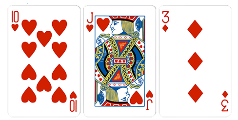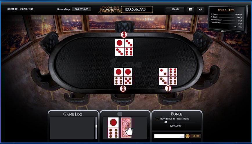 Di pemainan ini setiap pemain akan menerima dua kartu di awal permainan setelah itu akan di bagikan lagi satu kartu sehingga pemain akan memegang masing-masing 3 kartu di tangan dan pemain yang memiliki kombinasi jumlah nilai tertinggi akan memenangkan permainan.