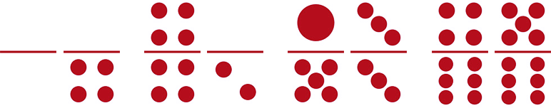 Seri 3 (tiga) titik, berjumlah 4 kartu dan terdapat 3 titik pada salah satu bagian masing-masing kartu (bagian atas atau bawah):